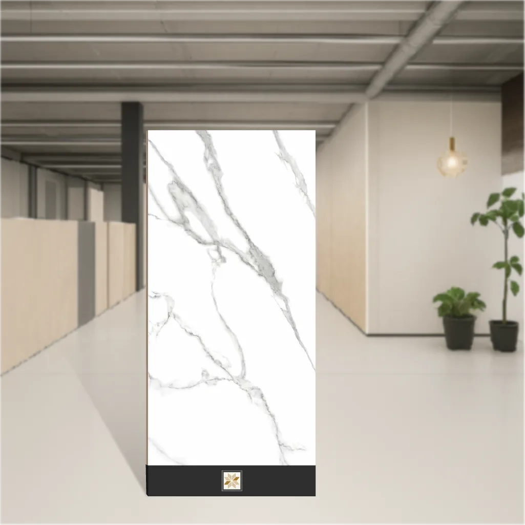 Details: High-quality Marble Wall & Floor Tile in the elegant Statuario Venato Dark marble look. These vitrified, glossy finish tiles measure 4 x 2 feet (1200 x 600 mm) with a 9 mm thickness, offering a premium marble design floor tile appearance while remaining durable and practical. Rectangular 2x4 ft marble tiles in white with natural veining recreate an authentic marble aesthetic suitable for indoor settings. Supplied in packs of 2 pieces, the tile is made from vitrified base material and is ideal for both residential & commercial projects. Highlights: • Marble Look Tiles with Statuario Venato Dark pattern and polished gloss. • Generous 4x2 ft (1200x600 mm) format for seamless, expansive layouts. • Vitrified construction: hardwearing, scratch resistance and water resistant. • Floor & Wall use — suitable as Marble Tile For Interior Floor and as cladding. • Easy to install, low-maintenance marble design floor tiles that deliver a sophisticated finish. Usecases: Perfect as Marble Look Tile for Living Room floors and feature walls, bedroom flooring and accent walls, bathroom floors and wall cladding, corridors, hotel lobbies and other indoor residential & commercial spaces. Use these tiles to create continuous, luxurious marble-style surfaces that enhance large open areas or provide striking focal points in interiors.
