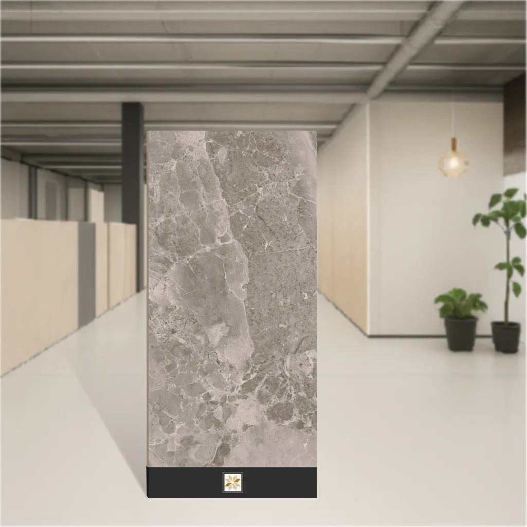 Stonice Grey 1200x600 mm Glossy PGVT Tile is a grey, marble-look vitrified tile in a large 1200x600 mm (4x2 feet) format with 9 mm thickness and a high-gloss finish. Designed for indoor use, this vitrified tile combines the elegance of marble with durable PGVT construction, making it suitable for both wall and floor installations in residential & commercial projects. Supplied in packs of 2 pieces, the tile offers a uniform grey tone that enhances contemporary interiors.