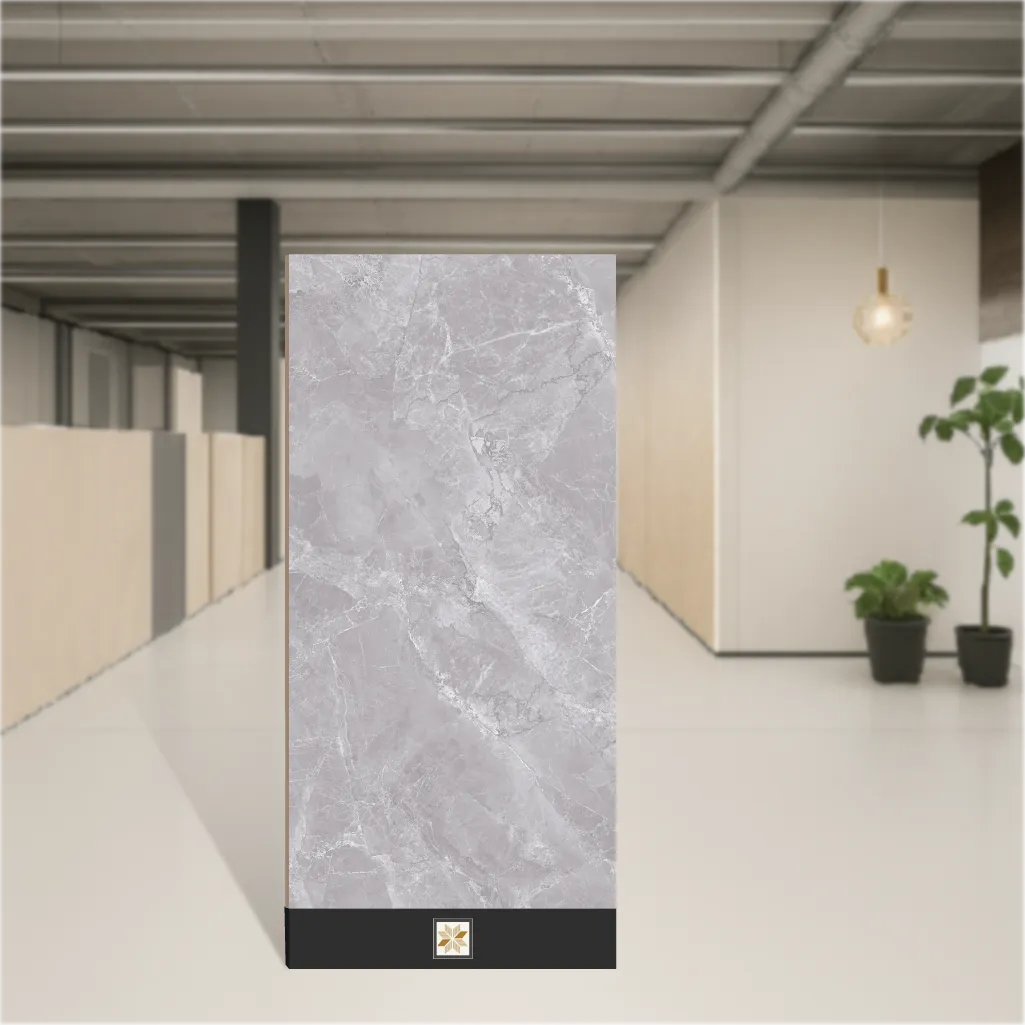 Details: Sumia Grey marble-look vitrified tile in a large 4x2 feet (1200 x 600 mm) format with a glossy finish. This 9 mm thick PGVT tile offers the elegant appearance of marble in a durable vitrified base material. Rectangular design available in 4 random designs, finished in grey to suit contemporary residential and commercial interiors. Pack quantity: 2 pieces. Suitable for both floor and wall use, indoor applications, and spaces requiring a marble look with low maintenance. Highlights: Glossy marble look; Vitrified PGVT construction for high strength and low porosity; Large-format 1200x600 (4 ft x 2 ft) tiles for fewer grout lines; 9 mm thickness for stability and long-lasting performance; 4 random designs for natural variation; Ideal for indoor floor and wall applications in living rooms, bedrooms and bathrooms; Easy to clean and maintain; Suited for residential & commercial projects. Usecases: Flooring and wall cladding in living rooms, bedrooms, and bathrooms; Feature walls and accent panels that require a marble aesthetic; Hallways, lobbies and retail or office interiors in residential and commercial projects; Indoor wet and dry areas where a durable, glossy vitrified tile is preferred.