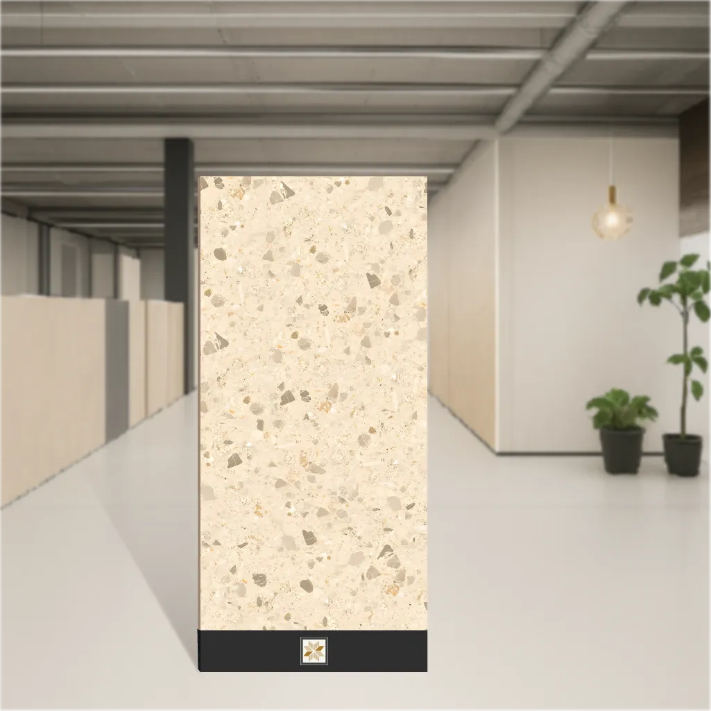 Details: A vitrified Terrazzo Beige wall and floor tile sized 4 ft x 2 ft (1200 x 600 mm) with a 9 mm thickness and a matte finish. The tile features a classic terrazzo pattern in a neutral beige tone, presented in a rectangular 4x2 feet format and sold in packs of 2. Designed for indoor use across residential and commercial projects, it combines a terrazzo look with the durability of vitrified material for long-lasting performance and easy upkeep. Highlights: - Dimensions: 4 ft x 2 ft (1200 mm x 600 mm); 4x2 feet format - Material & Finish: Vitrified construction with a matte terrazzo beige surface - Thickness: 9 mm for sturdy floor and wall installation - Design: Terrazzo pattern for a timeless, neutral aesthetic - Performance: Water resistant, scratch resistant, low maintenance, easy to install - Application: Suitable for both floor & wall use; indoor, residential & commercial Usecases: - Living room floors or feature walls to achieve a neutral, elegant terrazzo look - Bedroom flooring or wall cladding for a calm, cohesive interior palette - Bathroom floors and walls where a matte, slip-conscious surface and water resistance matter - Commercial spaces such as lobbies or retail interiors seeking terrazzo design with vitrified durability - Any indoor project requiring a versatile, easy-to-maintain terrazzo-look tile