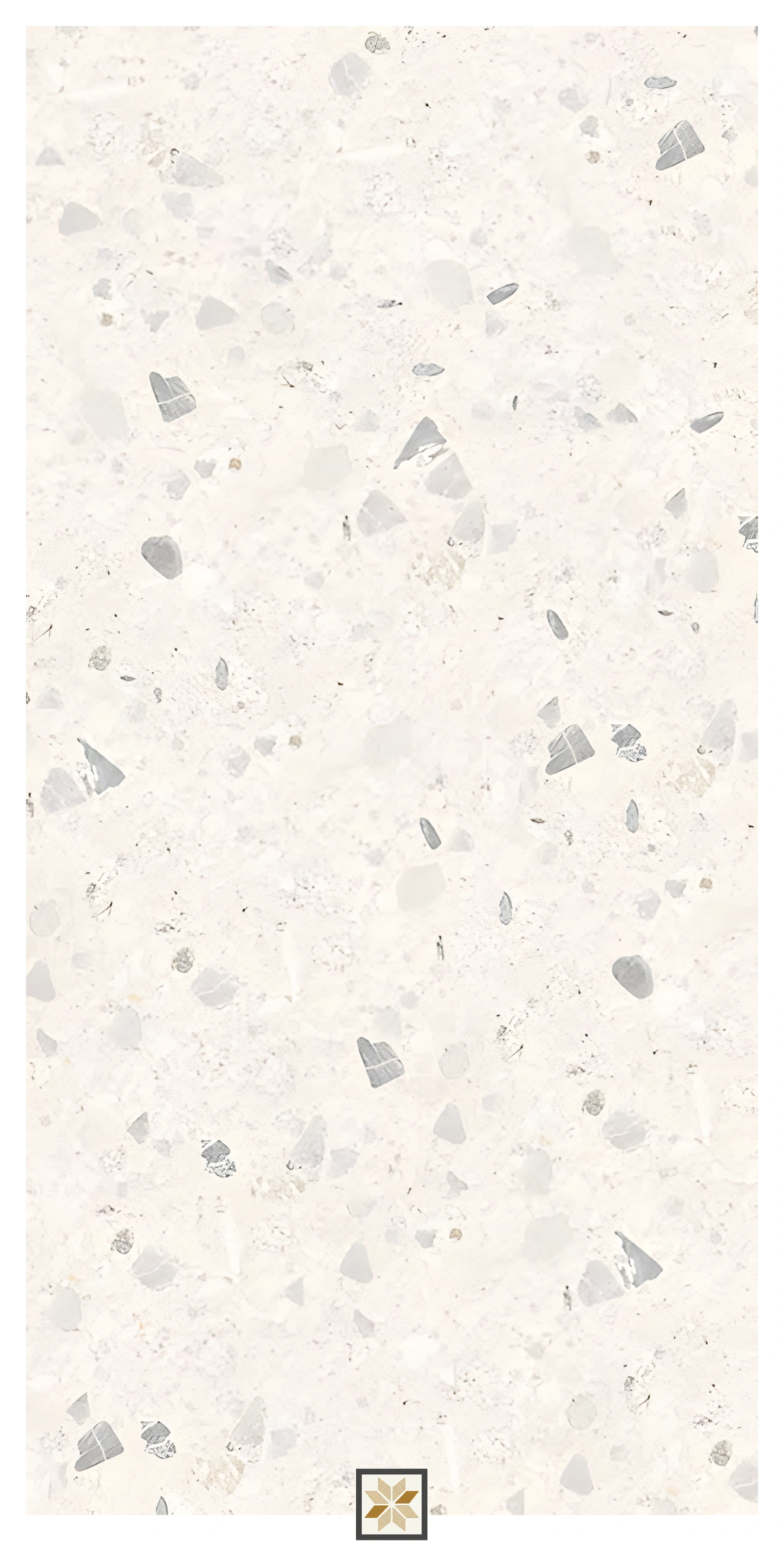 - Feature or accent walls in interiors that require a neutral white terrazzo aesthetic.
