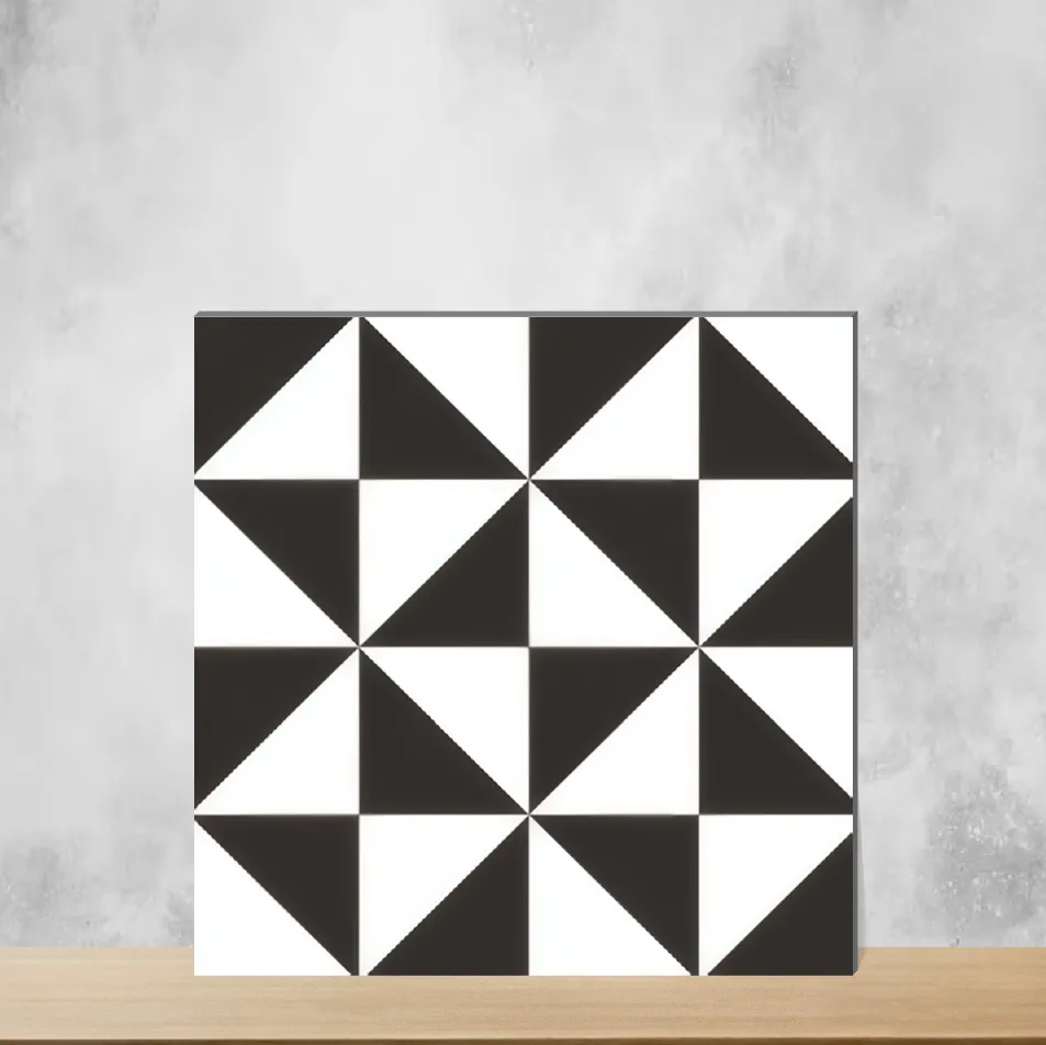 Details: Pattern 2 Black & White vitrified tile in a 300 mm x 300 mm (12x12 inch) size with a 9.5 mm thickness. These indoor tiles combine a Moroccan/Subway inspired look in a striking black & white palette, finished in low-sheen matte. Made from durable vitrified material for long-lasting performance on both floors and walls. Supplied in packs of 11 pieces, suitable for residential and commercial projects where designer tiles are desired. Highlights: Versatile Moroccan/Subway aesthetic in Black & White; 300x300 mm (12x12 inch) format; 9.5 mm robust vitrified construction; matte finish for slip resistance and subtle texture; suitable for floor and wall applications; indoor use for living rooms, bedrooms, offices, staircases and elevations; ideal for designer and contemporary interiors. Usecases: Flooring and wall cladding in living room and bedroom settings; feature walls and elevation panels; office interiors and commercial spaces seeking a designer tile look; staircases and indoor circulation areas; residential and commercial projects that require durable, low-maintenance vitrified tiles.