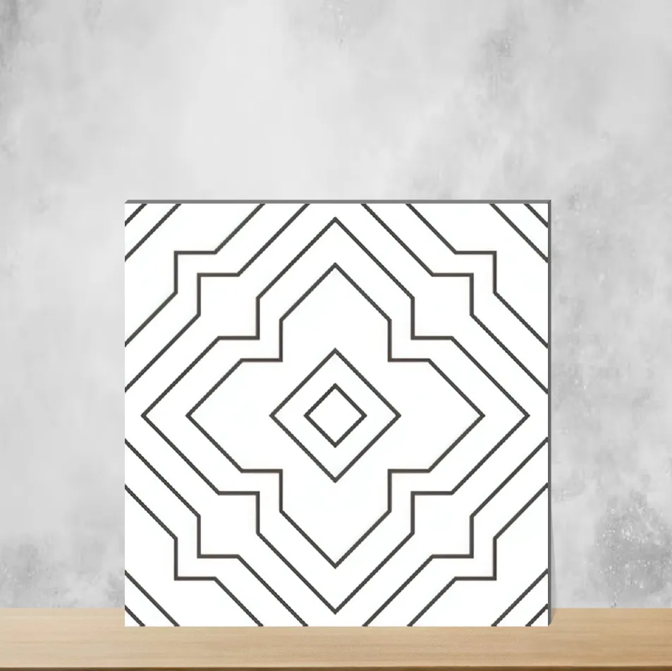 Details: A Black & White vitrified tile with a Moroccan subway-inspired motif in a sleek matte black finish. Sized 300 x 300 mm (12x12 inch) and 9.5 mm thick, this vitrified tile is designed for both floor and wall use, offering durable, low-maintenance performance for indoor residential and commercial projects. Highlights: Moroccan subway look and designer tiles appeal; matte finish for contemporary, low-glare surfaces; suitable for floor and wall applications; robust 9.5 mm thickness; pack of 11 pieces for easy coverage; ideal for indoor use in both commercial and residential settings. Usecases: Perfect for living room and bedroom flooring or wall cladding, office interiors, staircases and covered elevations where a stylish, long-lasting tile is required.