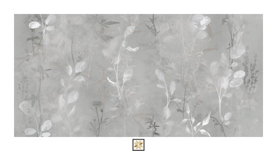 Vitrified Wilton Grey Decor Tropical Florals Matt Rectangular Tiles TL-8990-D (4x2 feet | 9 mm)