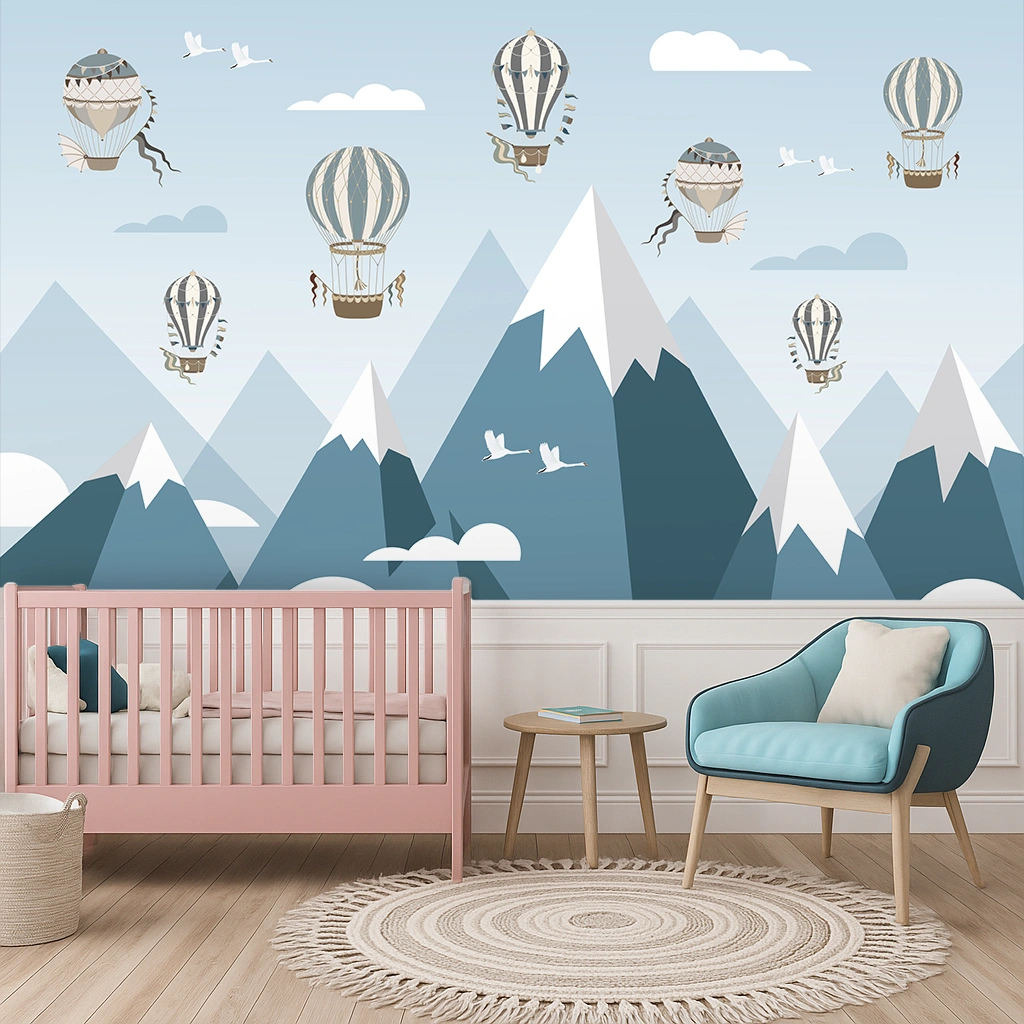 Transform your interiors with the Blue Hot Air Balloons Over Mountains wallpaper — an abstract, premium-quality design in calming blue tones that brings artistic depth to kids’ rooms, bedrooms, living rooms, dining areas and boutique commercial spaces. Printed on PVC-free WP01MTF paper at 150 GSM with a durable, breathable Non Woven base, this customized-size wallpaper delivers a flawless, made-to-measure fit for accent walls. The smooth matte finish provides an elegant, low-glare appearance while the tear-resistant construction ensures long-lasting performance. Supplied with a minimum order of 30 Sq. Ft., the design is ideal for creating a refined focal point that balances sophistication and playful charm.