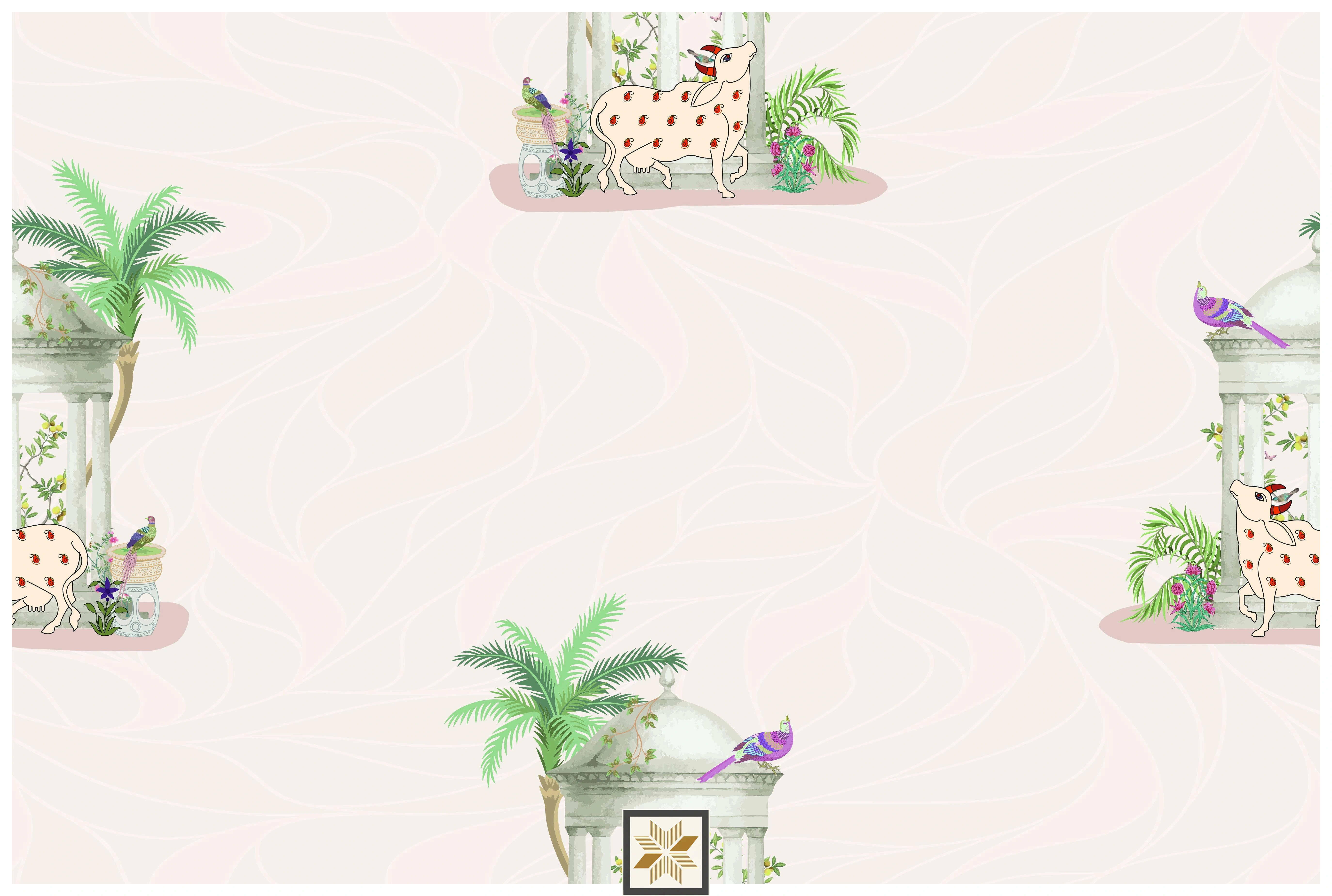 Multi Colour Wildlife Pichwai Wallpaper (40 inches width) : WP-32181-B