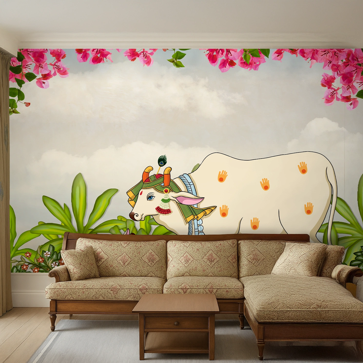Details: Elevate interiors with White Hand Painted Floral Scroll Wallpaper — a Pichwai-style, animal print–inspired design on a PVC-free Non Woven base. This premium, hand-painted look wallpaper features a smooth matte finish and is custom-made to your wall dimensions (MOQ = 30 Sq. Ft.). Printed on WP01MTF paper at 150 GSM, the breathable, tear-resistant Non Woven fabric delivers long-lasting performance and a refined appearance. Perfect for accent walls in living rooms, bedrooms, dining areas and kids' rooms, it installs easily using the paste-the-wall method for clean application and effortless removal. The artistic detailing and Indian-inspired motifs provide timeless sophistication for both residential and boutique commercial interiors. Highlights: - Design: White Hand Painted Floral Scroll, Pichwai style with subtle animal print influence - Material: PVC-free Non Woven base fabric, WP01MTF paper - Paper Thickness: 150 GSM for a premium feel - Finish: Smooth matte finish for an elegant, non-reflective surface - Size: Customized to fit any wall (MOQ = 30 Sq. Ft.) - Installation: Paste-the-wall method for easy application and clean removal - Applications: Accent walls in living rooms, bedrooms, dining rooms, and kid's rooms; suitable for residential & commercial projects - Durability: Breathable, tear-resistant construction designed for longevity