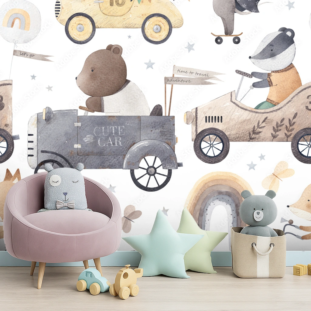 White Wildlife Canvas Mice Riding A Toy Vehicle Wallpaper ( inches width) : WP-26568-B
