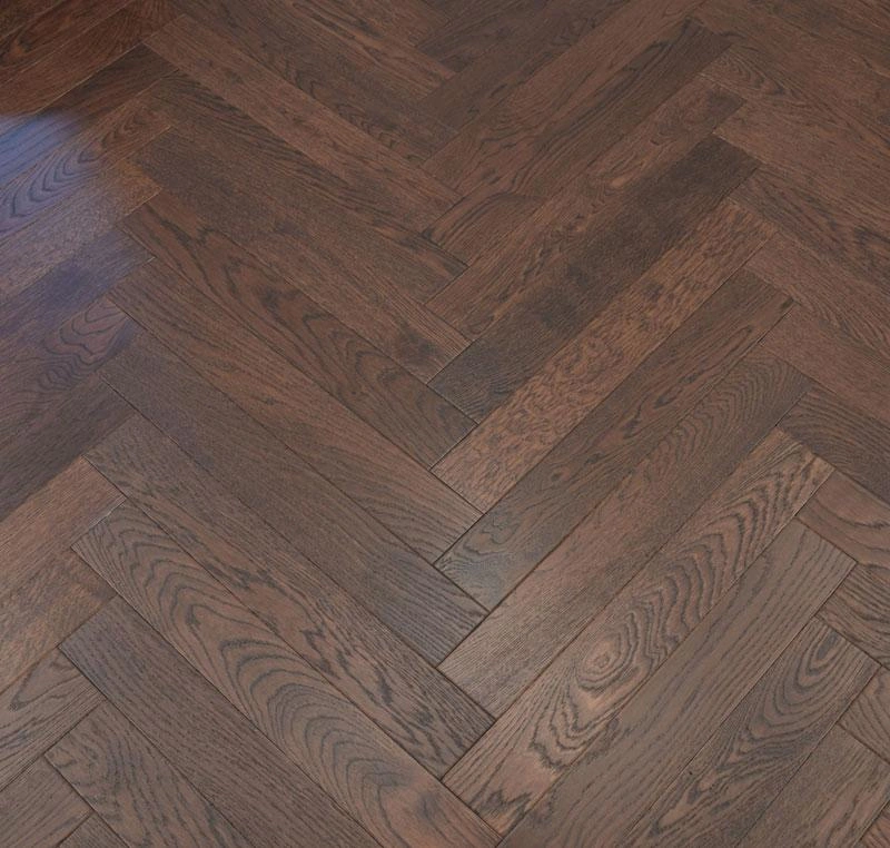 A refined Dark Oak Herringbone Manor engineered wooden floor in 600 x 90 mm planks (15 mm thickness) that pairs elegant visual appeal with reliable performance. Crafted as engineered hardwood, these brown indoor boards reproduce the warmth of solid timber while offering superior dimensional stability for both residential and commercial projects. Supplied in packs of 30 pieces for convenient installation, this flooring is built to create a robust, long-lasting surface and comes with a 30-year residential warranty.